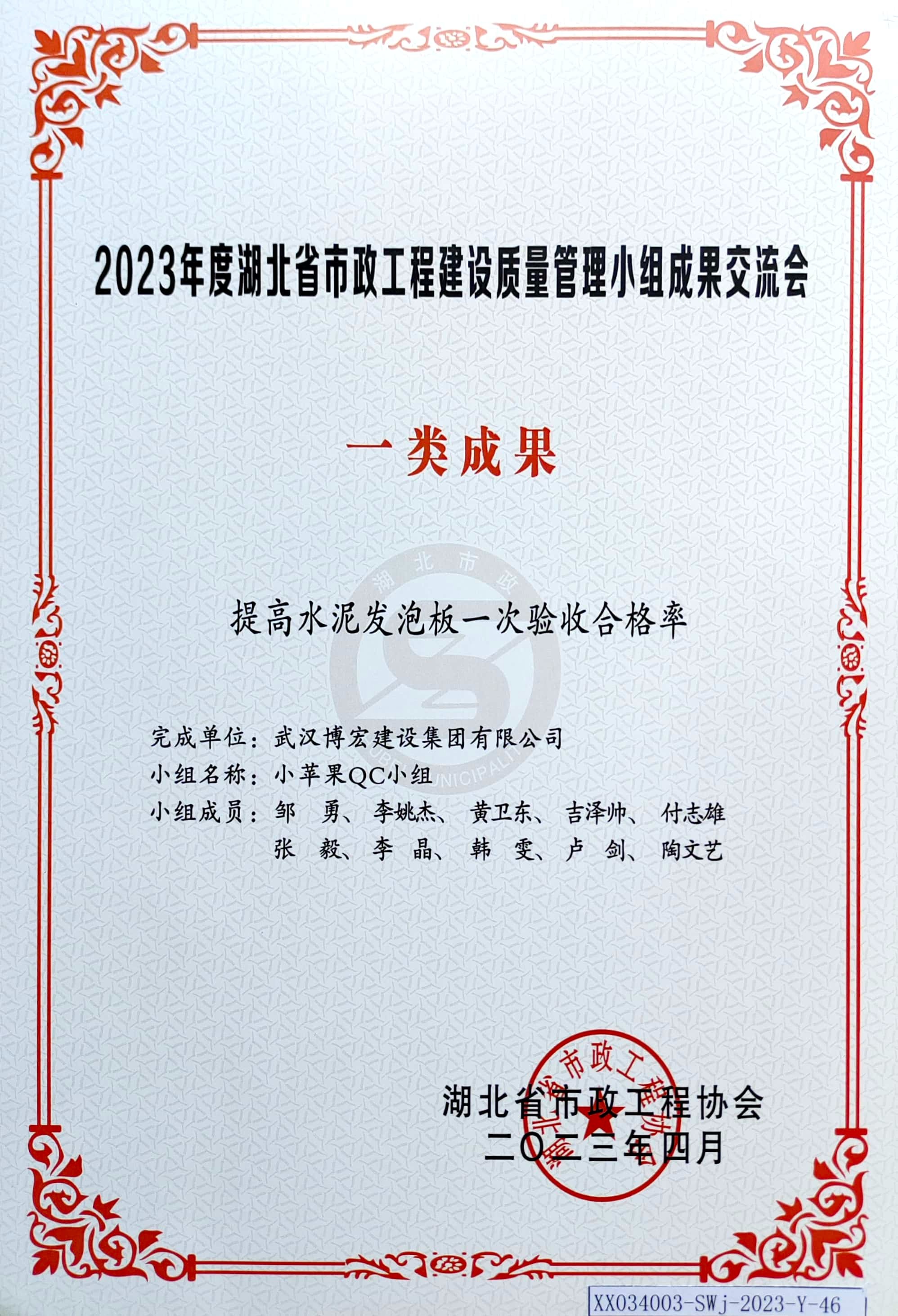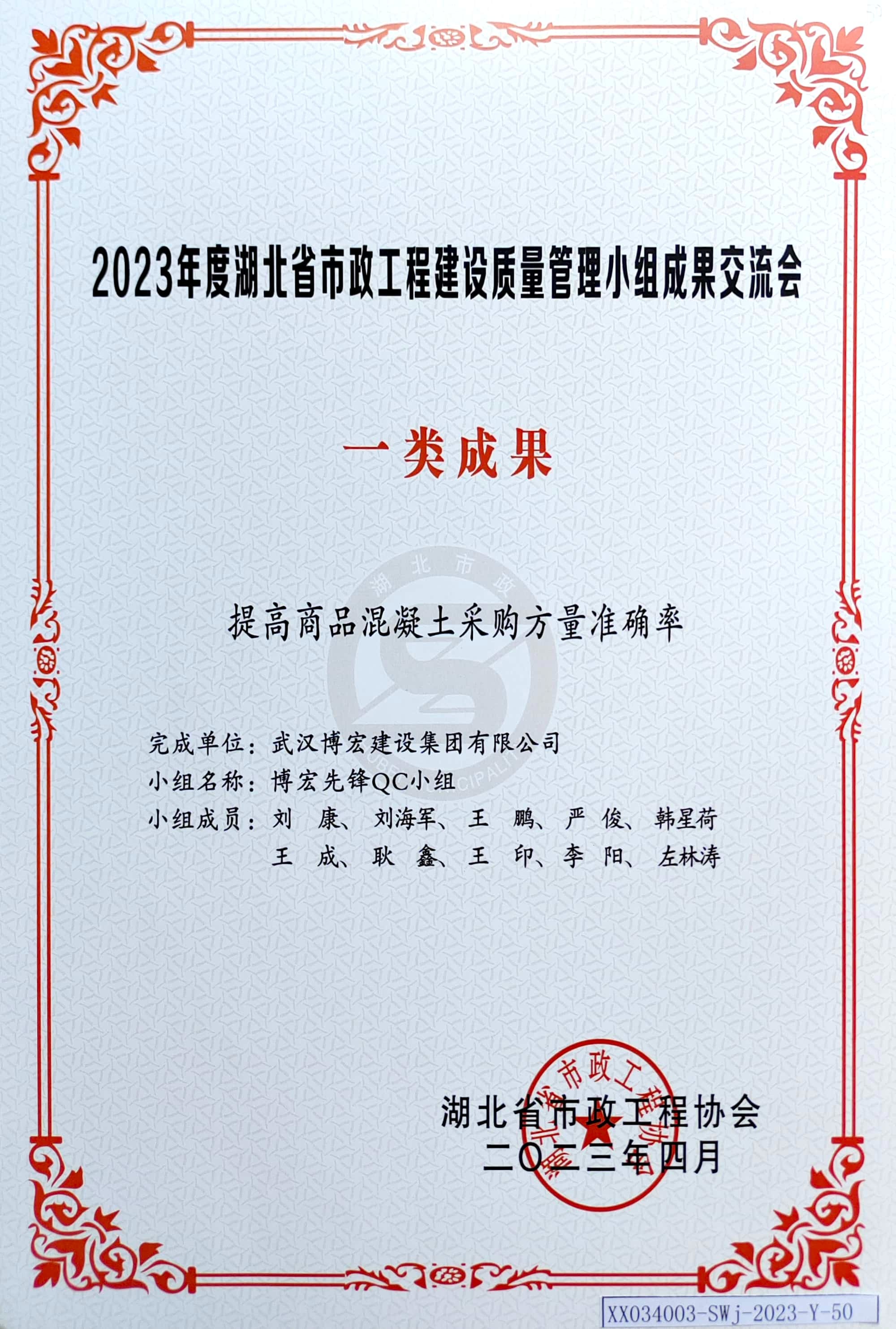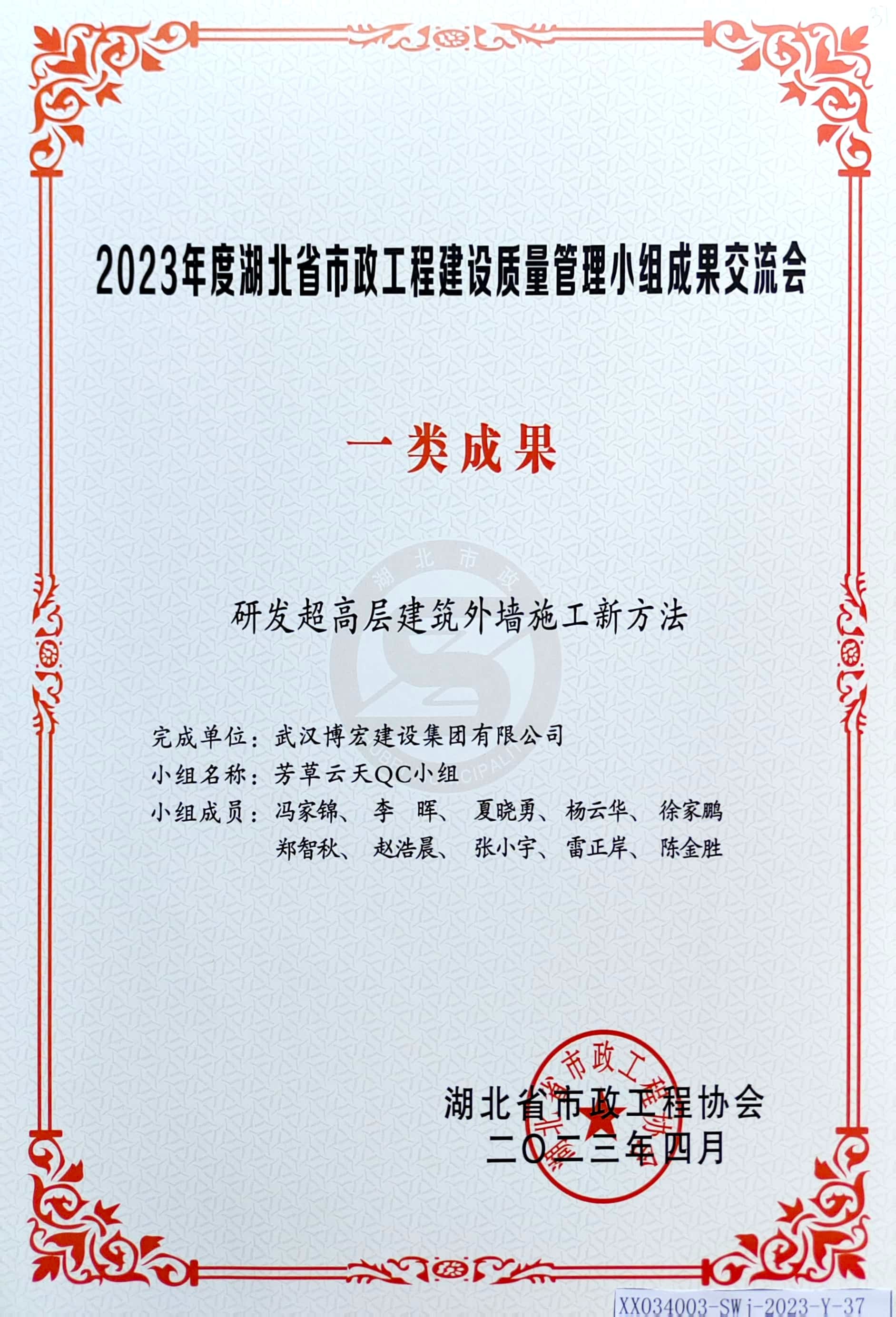 2023年度湖北省市政工程建設(shè)質(zhì)量管理小組成果交流會(huì) 一類(lèi)成果