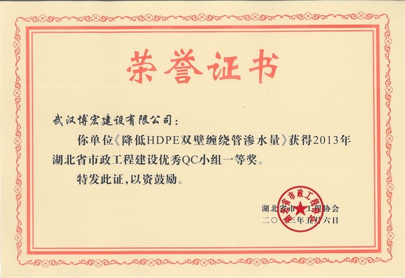 2012年度全國市政工程建設(shè)先進(jìn)質(zhì)量管理小組