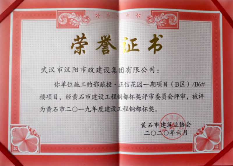 2019年度建設(shè)工程銅都杯獎(鄂旅投·正信花園一期項目(B區(qū))B6#樓項目