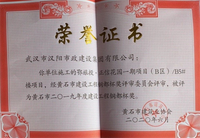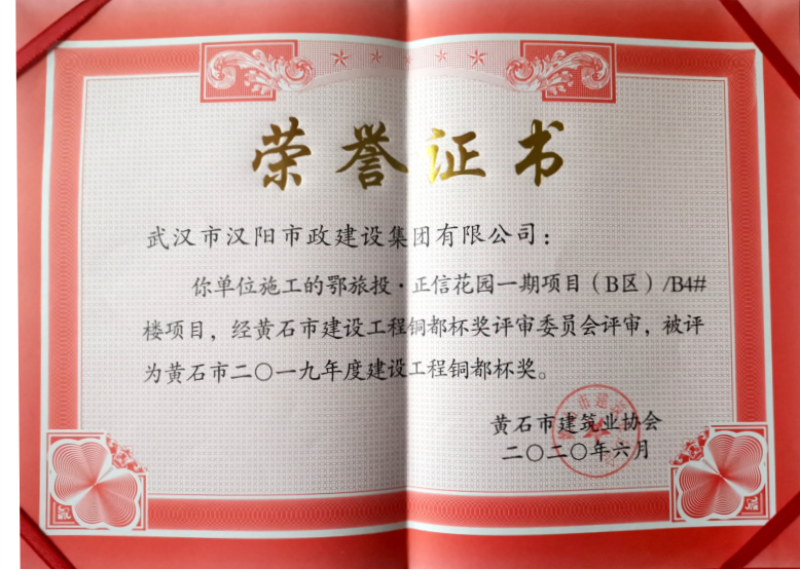 2019年度建設(shè)工程銅都杯獎(鄂旅投·正信花園一期項目(B區(qū))B4#樓項目