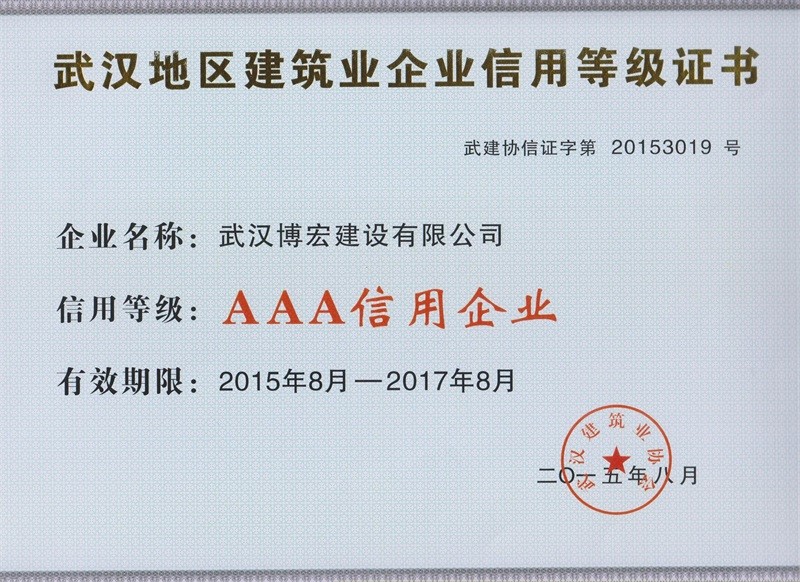 武漢地區(qū)建筑業(yè)企業(yè)信用等級(jí)證書(shū)