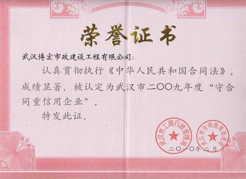 2009年度武漢市守合同重信用企業(yè)
