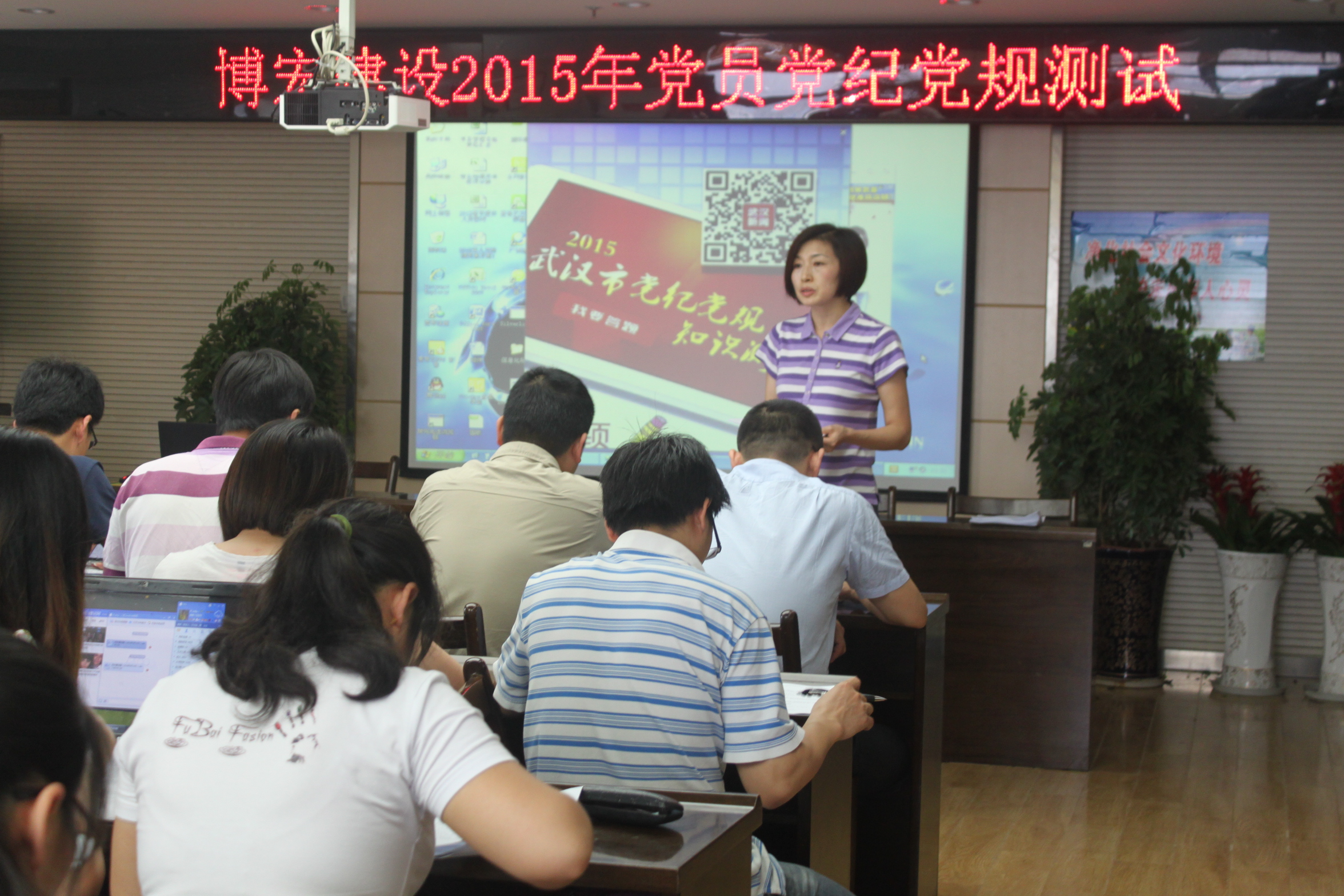 根據(jù)武漢市、漢陽區(qū)紀(jì)委統(tǒng)一要求,2015年5月29日下午,我公司黨支部組織全體黨員參加了2015年黨紀(jì)黨規(guī)測試。公司39名黨員同志通過集中考試,學(xué)習(xí)了廉政建設(shè)、黨紀(jì)黨規(guī)、政治常識等方面的內(nèi)容,全體黨員在黨紀(jì)黨規(guī)認(rèn)識上有了新提高,紛紛表示要進(jìn)一步加強(qiáng)學(xué)習(xí),積極發(fā)揮先鋒模范作用。