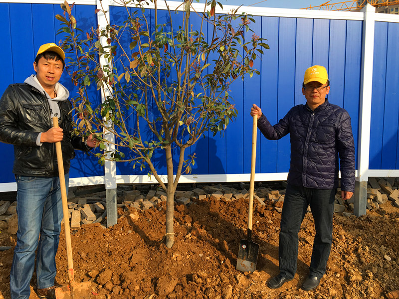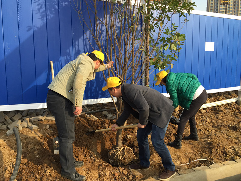 早春時(shí)節(jié),寒意猶在,但擋不住博宏建設(shè)志愿者“共建綠色家園,營(yíng)造優(yōu)美環(huán)境”的熱情。3月12日上午,博宏建設(shè)志愿者一行40余人,在公司黨支部書記的帶隊(duì)下,扛著鐵鍬,前往正在實(shí)施湖泊整治的墨水湖邊。按照事先準(zhǔn)備的種植規(guī)范,志愿者們短短一上午便完成20余棵紅葉石楠、30余棵水杉和一筐麥冬、鳶尾花的種植任務(wù)。