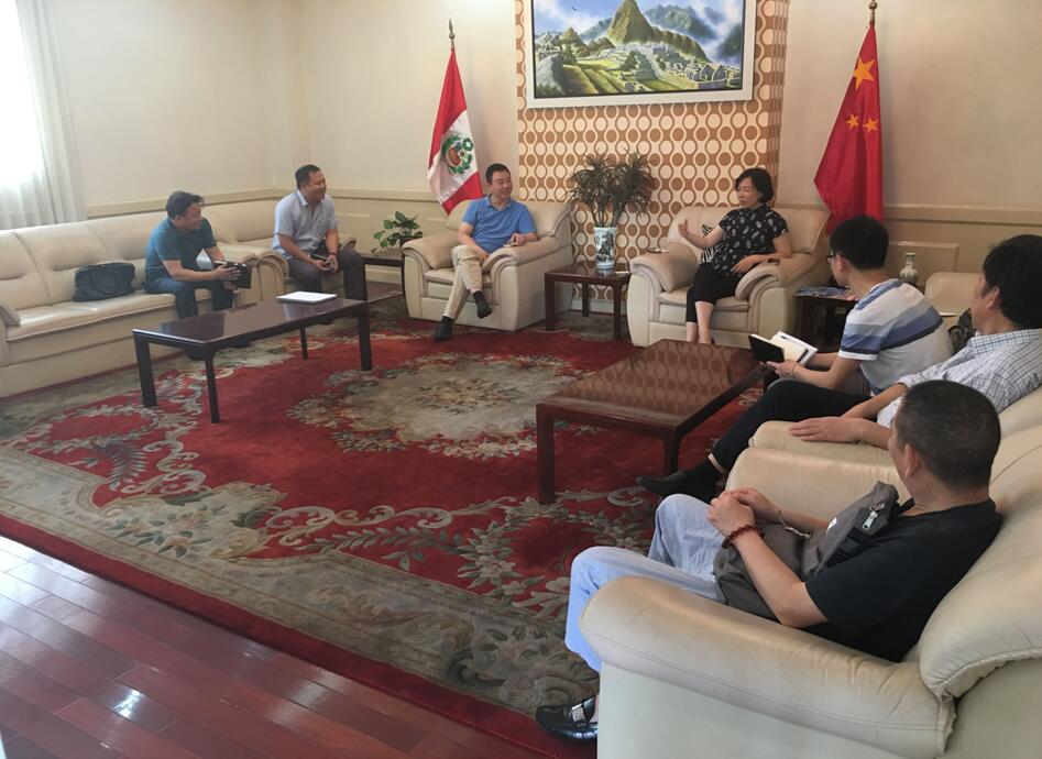 考察團隊會見中國駐秘魯大使館經(jīng)濟商務(wù)參贊處郝沁梅參贊(右四)