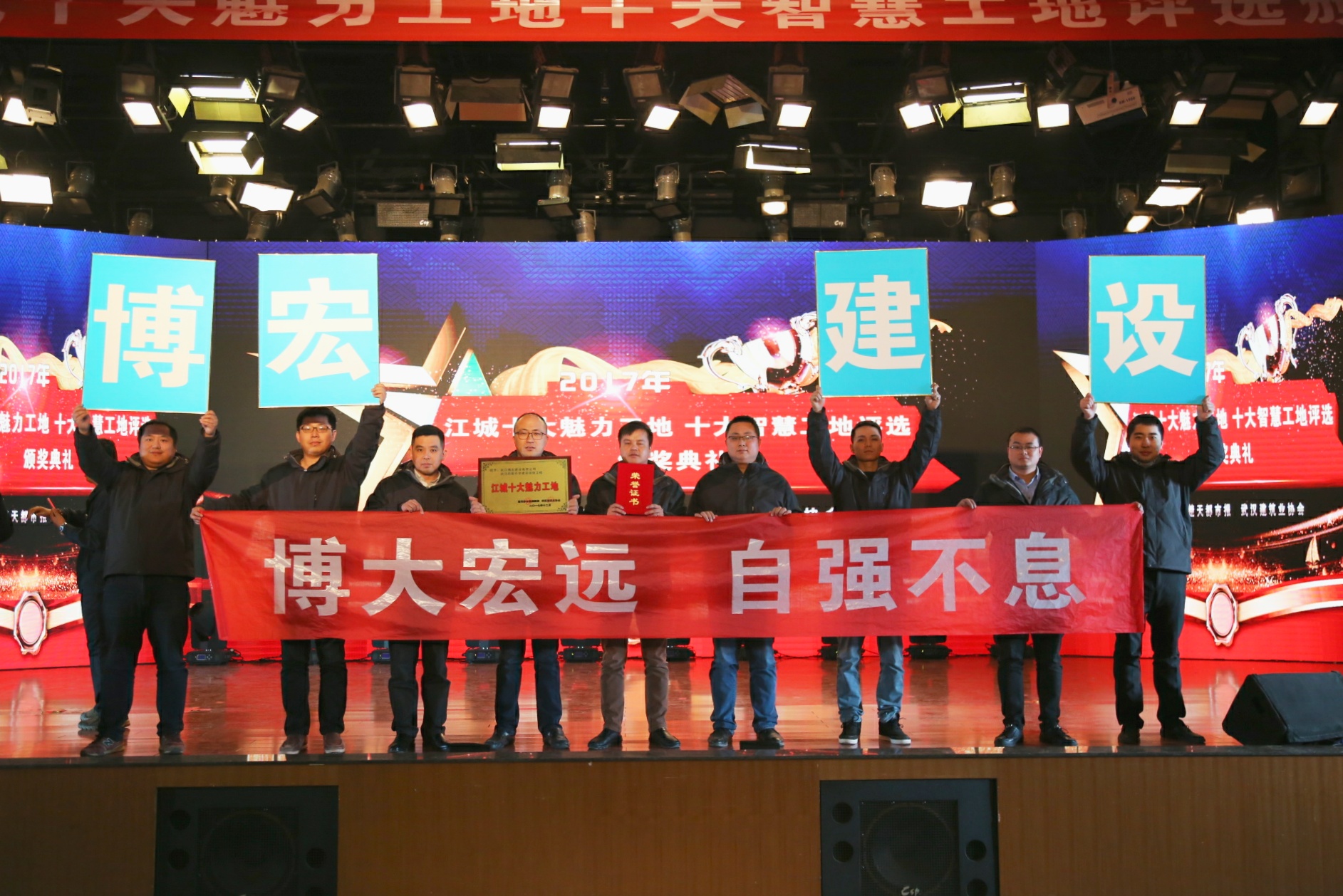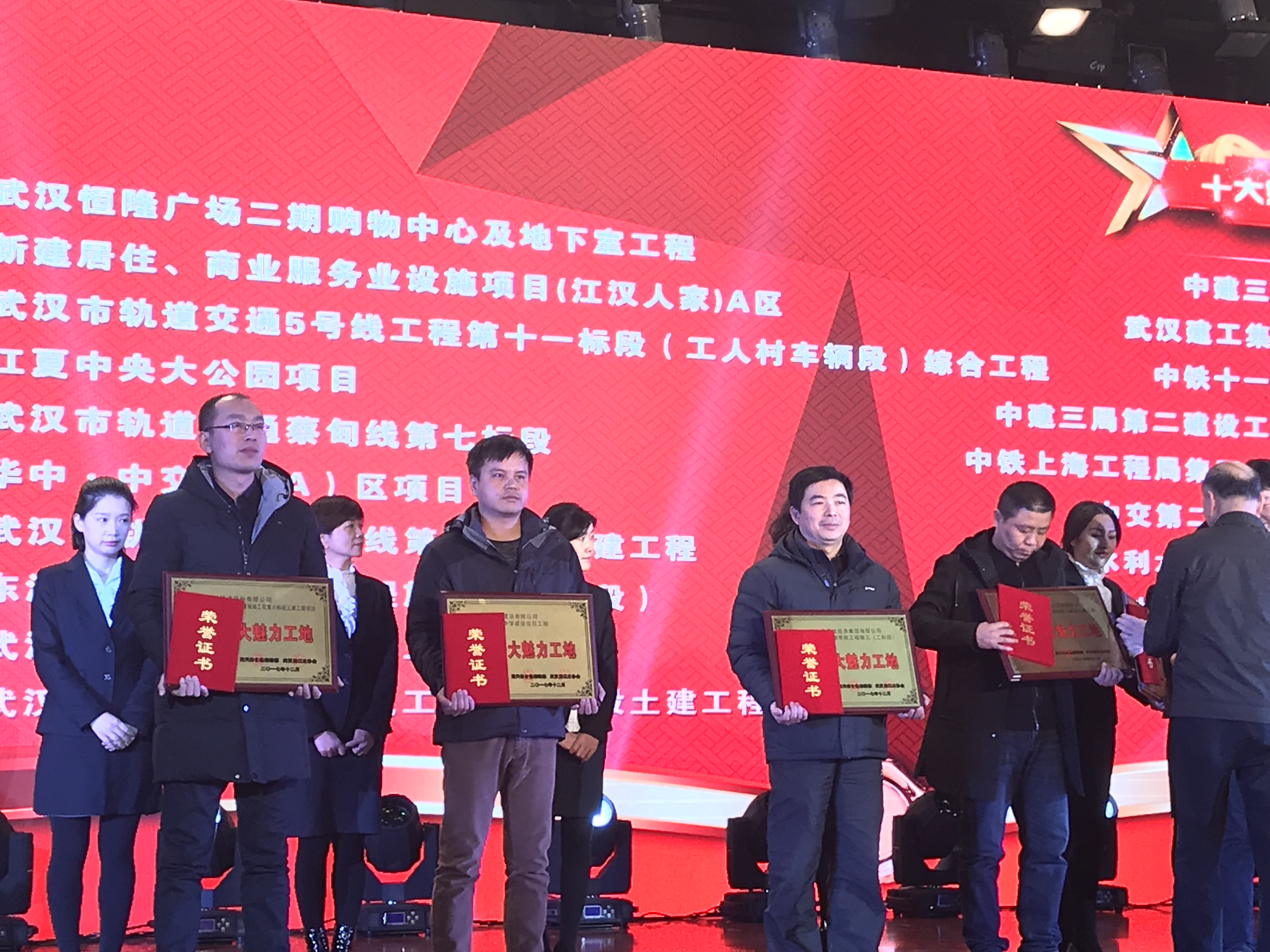2018年1月7日下午,2017年度“江城十大魅力工地、十大智慧工地”評選活動頒獎典禮在楚天傳媒大廈隆重召開,湖北省總工會、武漢市總工會、武漢建筑業(yè)協(xié)會、湖北日報、楚天都市報等相關(guān)單位領導出席典禮,并為武漢四新中學建設項目工程等獲獎工程頒發(fā)獎牌與榮譽證書。