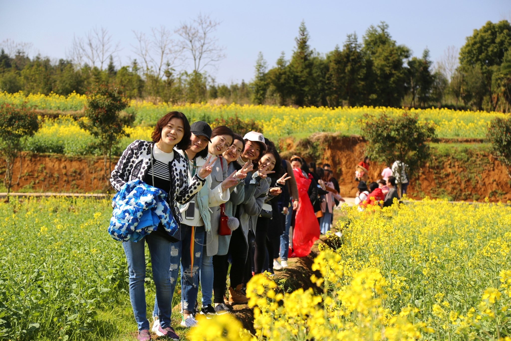 活動(dòng)當(dāng)天,春光和熙,帶著歡聲笑語(yǔ),全體女職工一路驅(qū)車(chē)來(lái)到了湖北咸寧某油菜花基地,在這片黃燦燦的世界里,“女神”們游走在田間小路,連小蜜蜂也“嗡嗡嗡”地歡迎她們的游覽。湛藍(lán)的天空、金黃的油菜花以及一張張綻放的笑顏,那是這個(gè)春天里最美的一幅畫(huà)。