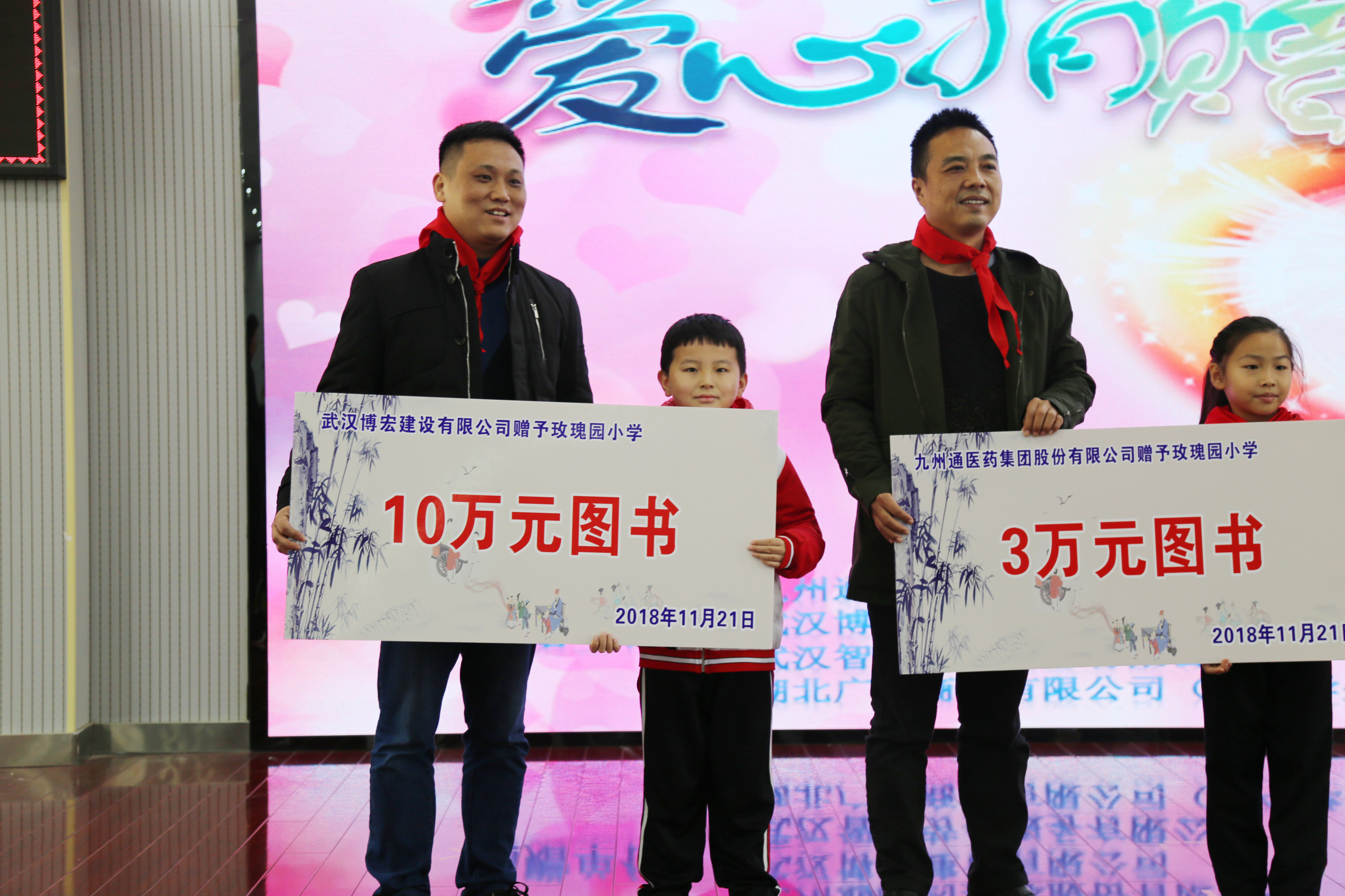 “愛心捐贈(zèng),助力前行”,11月21日上午,漢陽(yáng)區(qū)玫瑰園小學(xué)芳草校區(qū)圖書捐贈(zèng)儀式在該校報(bào)告廳舉行,漢陽(yáng)區(qū)工商聯(lián)副主席張蓮莉,區(qū)教育局副局長(zhǎng)李兵,區(qū)房管站副站長(zhǎng)陳衛(wèi)琴、魏慧民,玫瑰園小學(xué)校長(zhǎng)黃智玲,武漢博宏建設(shè)有限公司黨支部副書記郭一清、副總經(jīng)理蘇琦,武漢智誠(chéng)勞務(wù)服務(wù)有限公司總經(jīng)理劉春濤以及九州通醫(yī)藥集團(tuán)股份有限公司、湖北廣惠商貿(mào)有限公司等單位代表出席捐贈(zèng)儀式。為助力推進(jìn)漢陽(yáng)區(qū)教育事業(yè),豐富學(xué)校圖書庫(kù)存,博宏建設(shè)現(xiàn)場(chǎng)為該校捐獻(xiàn)了價(jià)值10萬(wàn)元的圖書。