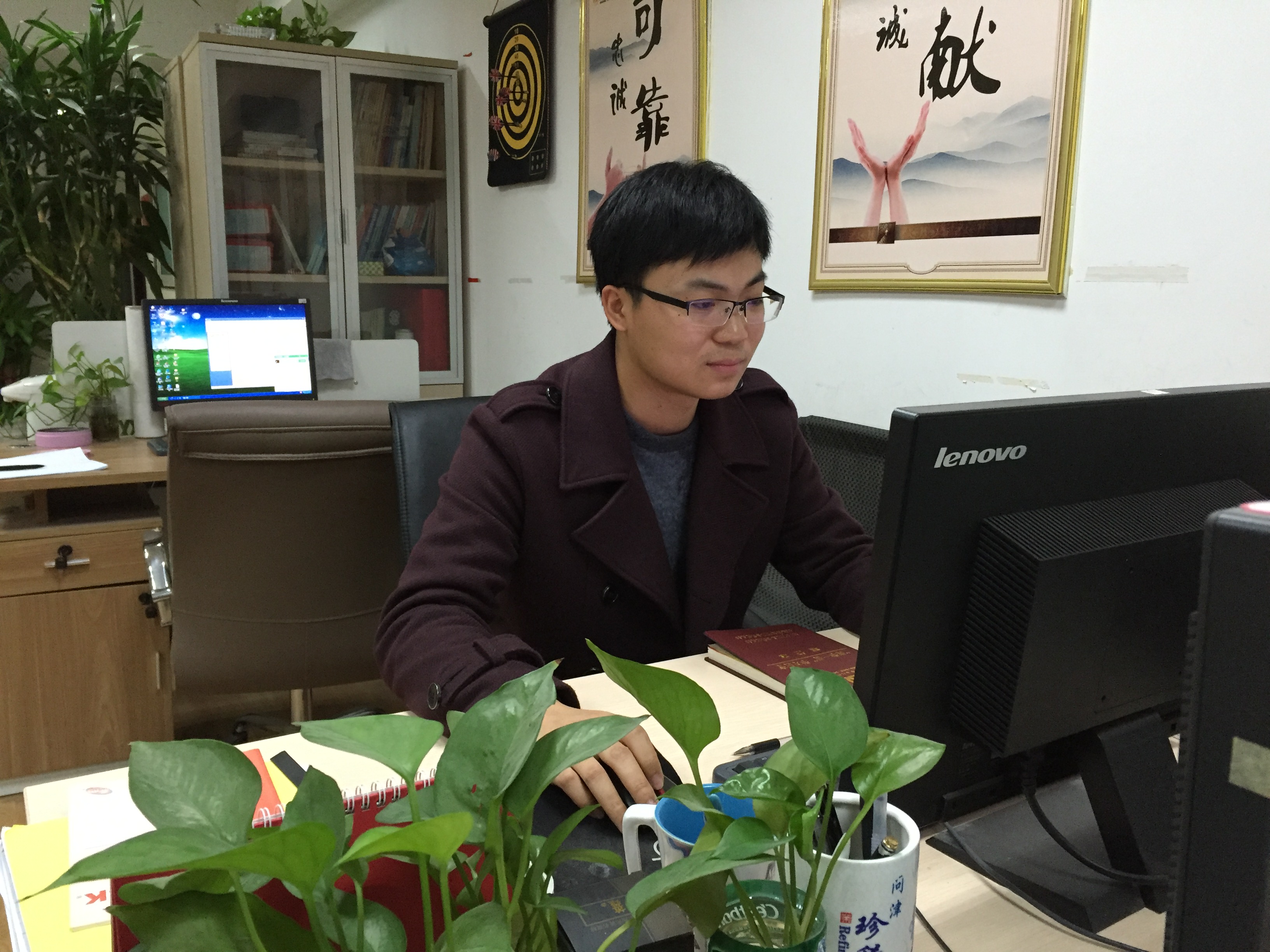 一個瘦高的90后小伙子,初見時,他正忙于工作,在電腦桌前敲打著什么,正擔(dān)心會打擾他時,他卻已經(jīng)熱情地招呼著我們坐下,當(dāng)?shù)弥覀兿胍稍L他時,他顯得既有點靦腆,又有點驚喜,他就是今天我們的主人公——周昌文。