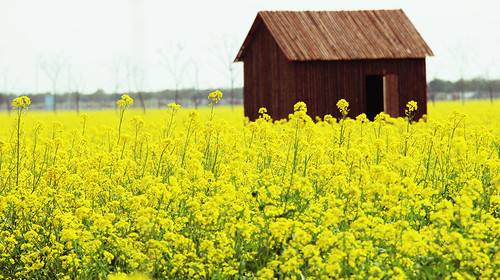 陽春三月,春風如沐。桃花紅了、柳葉綠了,長江的水也暖和了。露水吻濕了片片綠葉,整個江城散發(fā)出如酒似蜜的清香。田里金黃的油菜花,成了蝴蝶的天地,美麗的蝴蝶在金黃色的舞臺上跳著柔和而優(yōu)美的舞姿,偶爾一陣微風吹來,油菜花立刻涌起了高低起伏的“金浪花”,遠遠望去,令人美不勝收!——這是我記憶中的春天油菜花地。