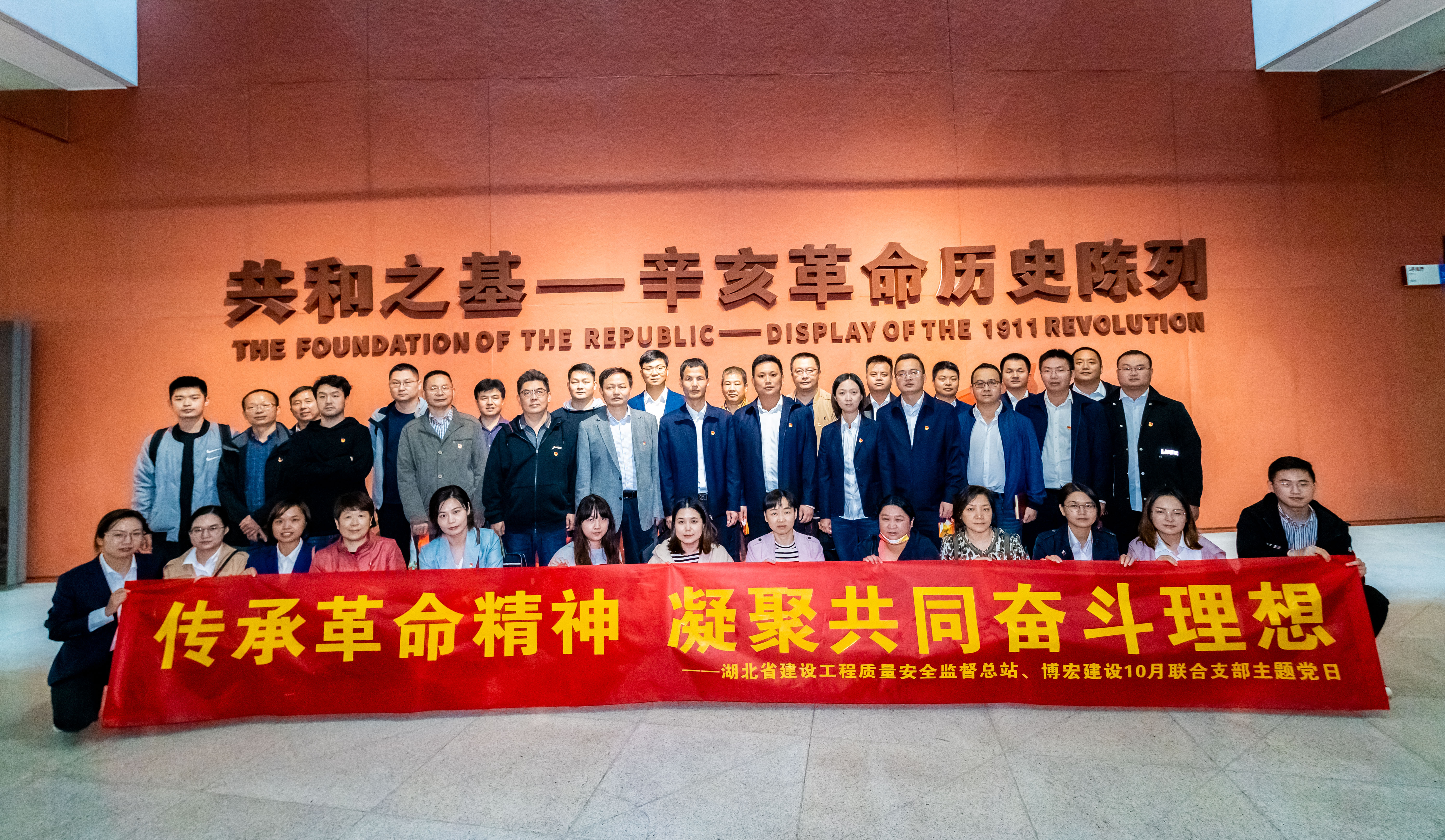10月14日,湖北省建設工程質(zhì)量安全監(jiān)督總站(簡稱“省質(zhì)安總站”)與博宏建設聯(lián)合開展“傳承革命精神,凝聚共同奮斗理想”10月主題黨日活動。省質(zhì)安總站黨支部書記、站長楊碧華、副站長丁建平、副站長徐建軍,博宏建設黨支部書記、董事長鄒勇,總經(jīng)理蘇琦、黨支部副書記郭一清、副總經(jīng)理辛桂華等共計40名黨員同志參與此次活動。