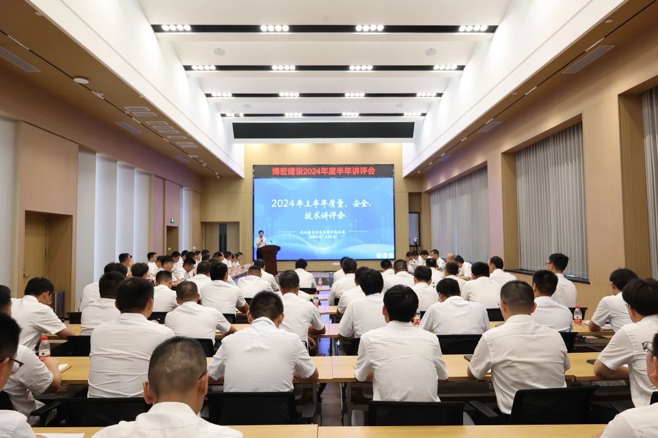為切實(shí)提升項(xiàng)目管理水平,認(rèn)真梳理項(xiàng)目現(xiàn)場優(yōu)秀做法,找準(zhǔn)短板問題,明確后續(xù)工作重點(diǎn)要求。7月26日下午,博宏建設(shè)集團(tuán)2024年上半年質(zhì)量、安全、技術(shù)講評會在公司31樓會議室召開。公司黨委班子、總助、部門負(fù)責(zé)人、項(xiàng)目經(jīng)理、技術(shù)崗、質(zhì)檢崗、安全崗、施工崗共計(jì)74人參加會議。會議由總工辦彭迎主持。